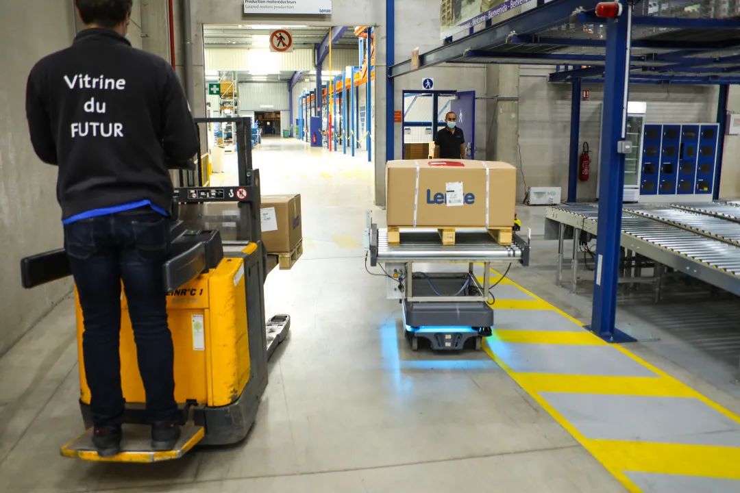 这个任务落到了配备电动传送装置的机器人 AMR MiR200 肩上。为了这个项目,Lenze 公司联手了集成商 CJL Pack 以及分运商 HMI-MBS。从起草规范到安装调试,该解决方案用了一年时间落地。