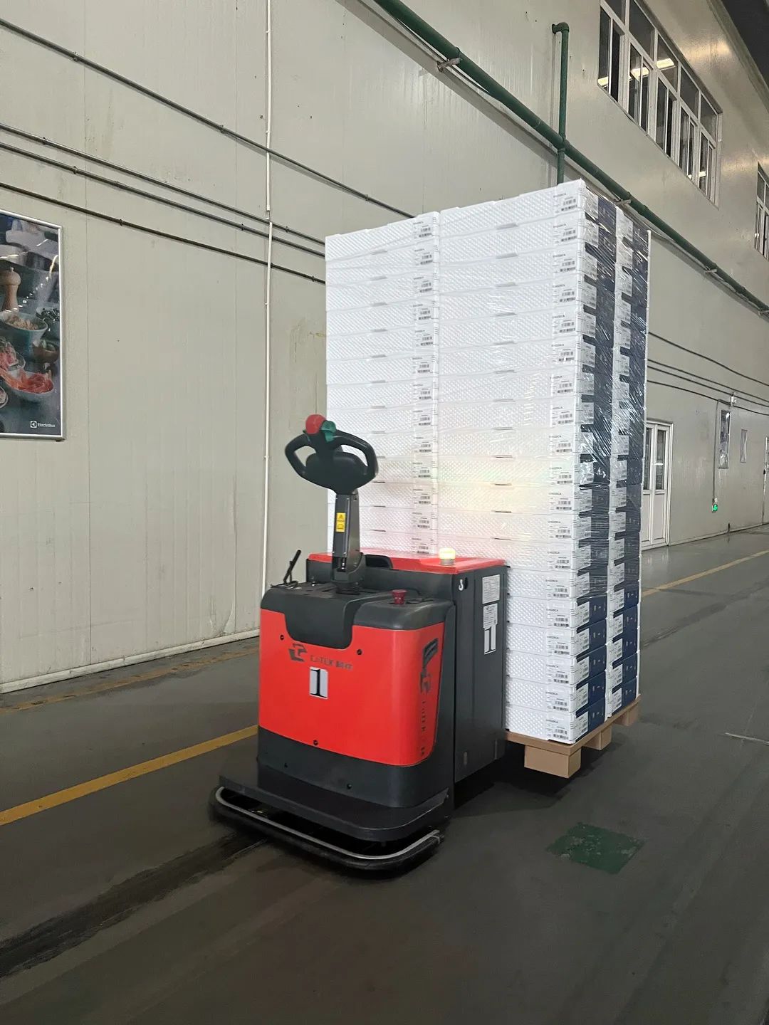 作为五年前的项目,磁条导航的托盘搬运AGV叉车适应该工厂的作业场景,且满足高效搬运的要求。
