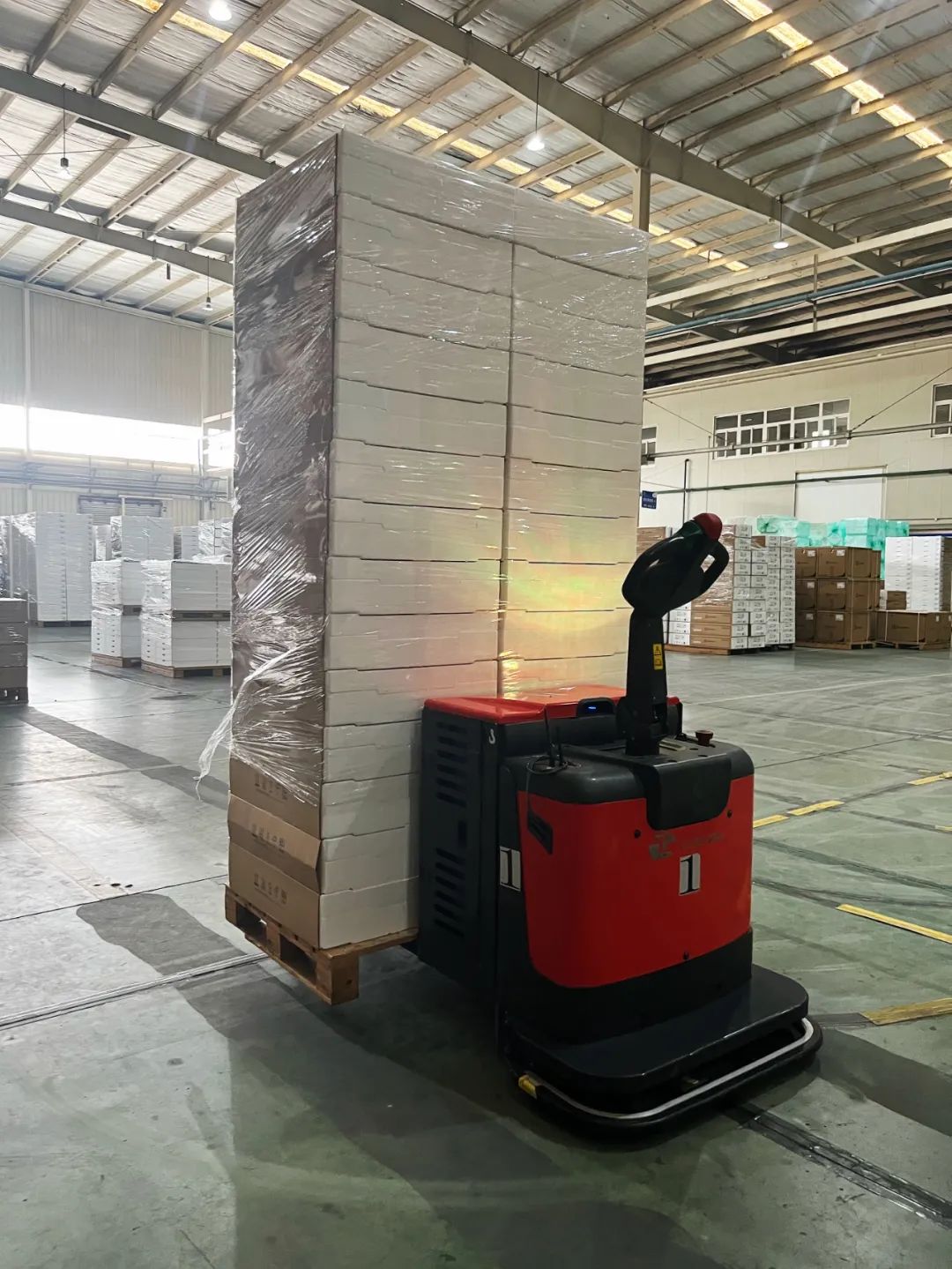 搬运货物高度能达到2.3米左右,空间得到最大利用。
