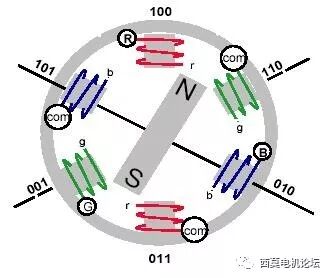 下面从转矩角度分析直流无刷电机的运行过程。对于直流有刷电机来说,虽然转子在不停的旋转,但是由于定子侧的电刷位置不变,所以定子产生的直流励磁磁势