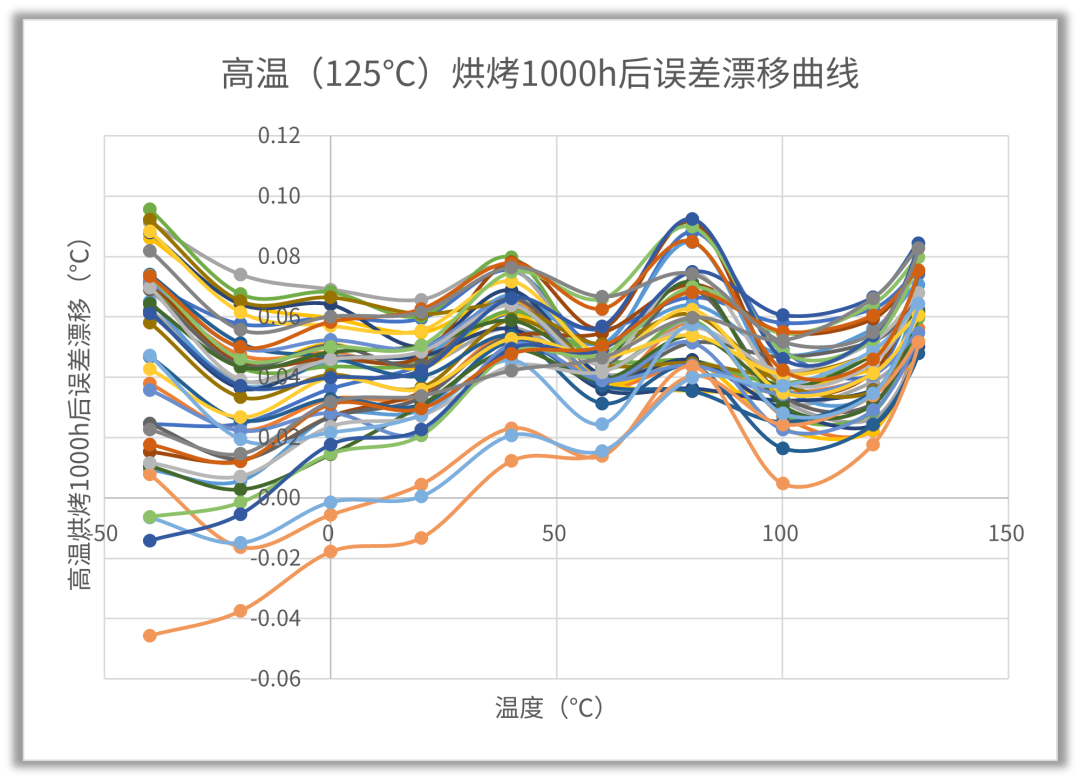 在高温(125°C)烘烤 1000h 后,误差漂移小于 0.1°C,极端条件稳定性突出,适用于精密仪器、高温流程等严苛场景,保障设备长期稳定运行,提升工业精度与可靠性。
