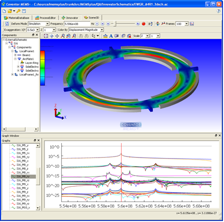 通过 MEMS+ 对环形谐振器进行模态、静电力驱动及频响分析,工程师可快速获取: