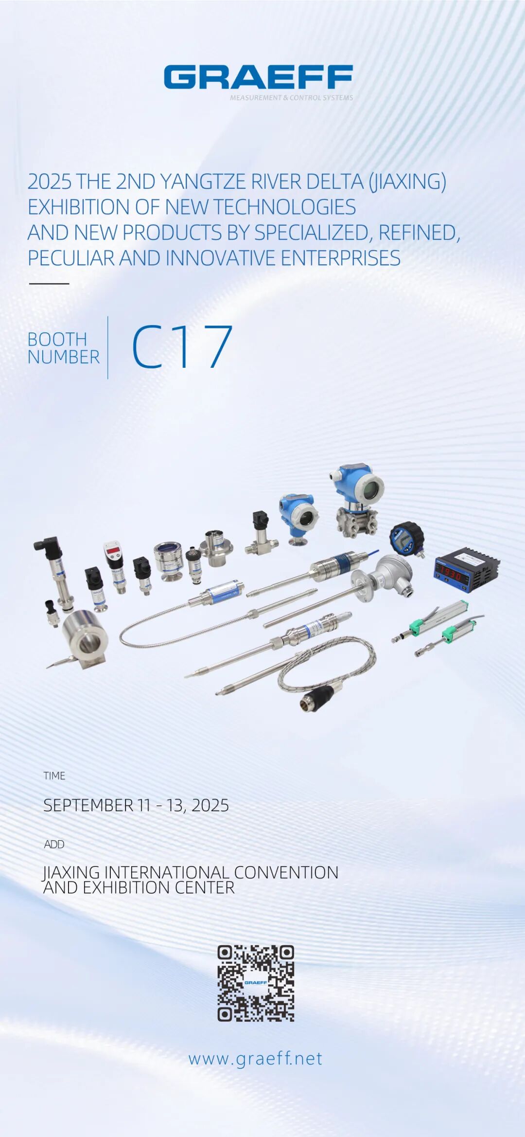9 月 11-13 日,嘉兴国际会展中心(浙江省嘉兴市南湖区新气象路618号)C17 展位,GRAEFF(格拉夫)期待与您面对面交流,用专业测量技术帮您解决生产难题!关注 GRAEFF(格拉夫)官方公众号,后续推文将拆解各产品行业应用案例,提前锁定技术亮点~